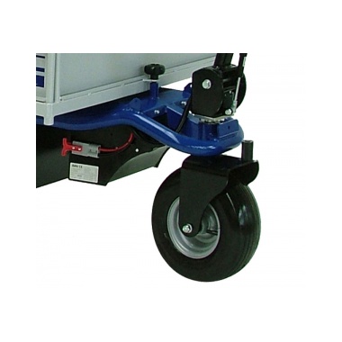 Our 3 wheel electric pedestrian operated cart is equipped with a sturdy tubular steel frame and powder coated with exterior paint, able to be accessorized with various type of containers, or platforms, easy to be installed and interchanged.